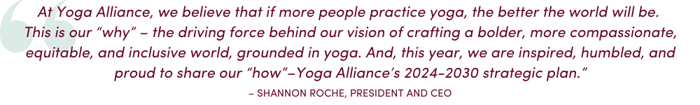 Guided by our 2024-2030 Strategic Plan, we’ve spent the last few months gathering expertise and knowledge to determine how Yoga Alliance can best support the needs of yoga, and those who practice and share it, including new membership options and a revised credentialing approach.